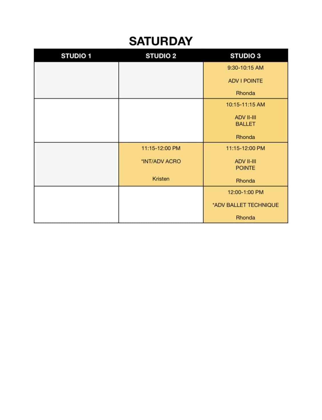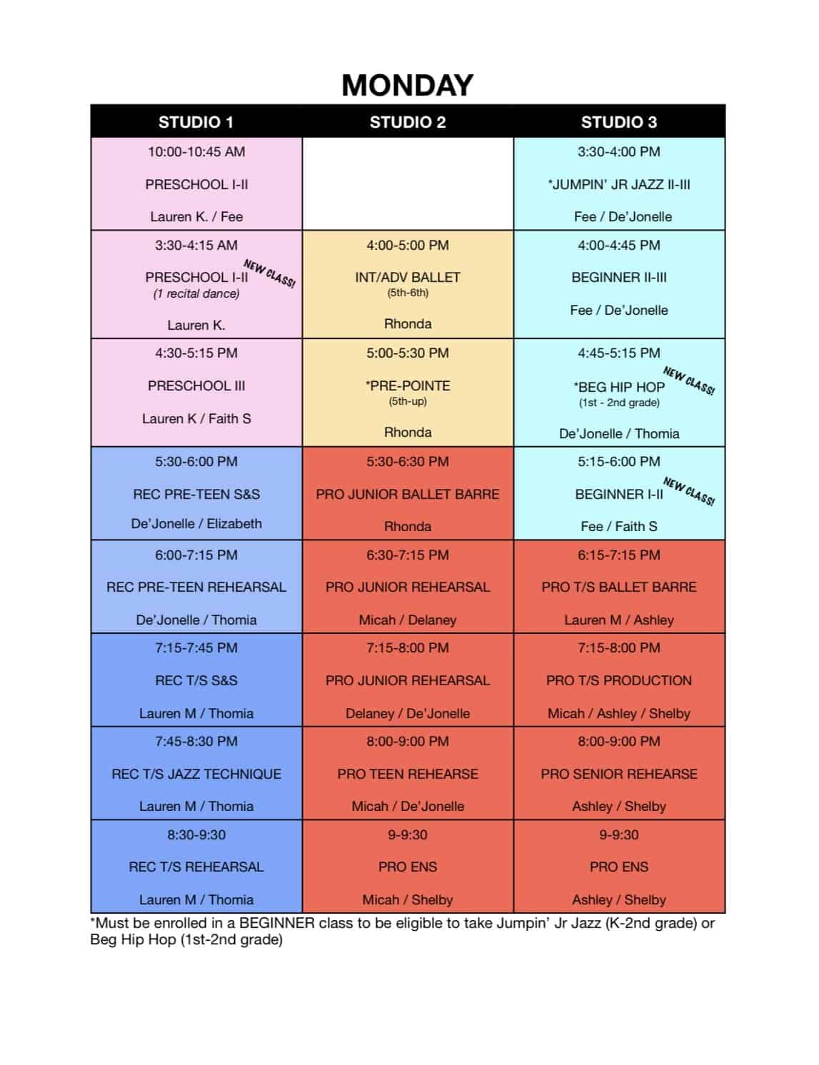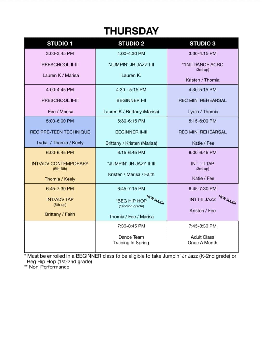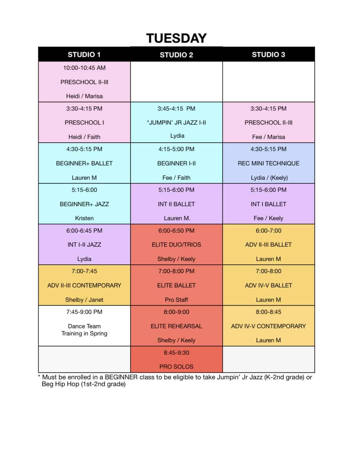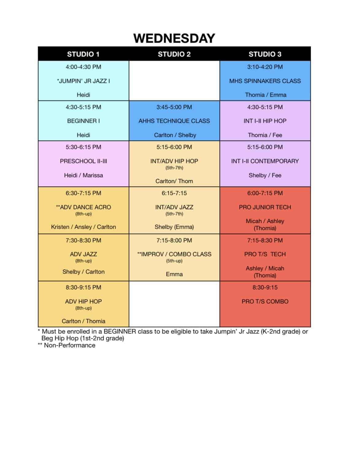 Fall Schedule